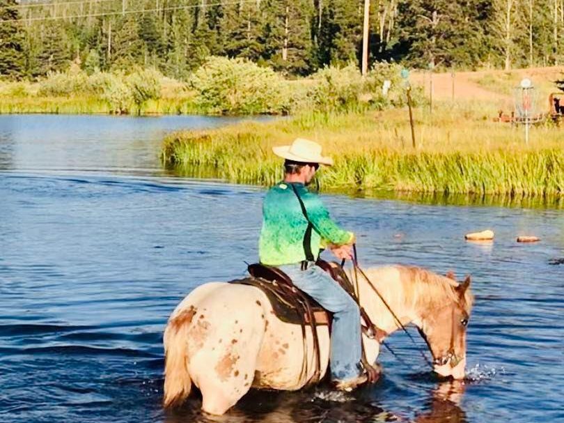 Buddy is a 2018, 15.3 HH, Dapple Grey, Gelding and Buddy sells with 100 percent satisfaction guarantee and sells. There aren’t enough words in the dictionary to explain how special Buddy is. This gelding is a true family horse. We has a cousin that is a total beginner and doesn’t even know how to put a halter on a horse and we trust Buddy to take care of him. Buddy is our go to lesson horse at the ranch because anyone can ride him. If you can hold the reins in your hand you can ride this gelding. Buddy is the brokest crossbred we have ever seen. His lead departures are perfect, he has a huge stop, and a beautiful turn around on him. You can side pass him over to any gate to open/close it. Buddy has seen more outside miles than most 80 year old ranchers. No matter what you encounter on this gelding he will handle it like a champ. The 8 year old girl that lives next door to us hauls him to the play days on the weekends where he packs around 3 or more kids through all the play day events. This gelding has more patients than any horse we have ever seen. All the kids will walk out to catch Buddy and he will walk right towards them and put his head on the ground so they can put his halter on. They will lead Buddy to the nearest fence and climb on him. They ride Buddy all over the ranch bareback in a halter. Buddy has gone on overnight fishing expeditions where he packed through the mountains. Buddy is as sure footed as they make them. This gelding is such a smooth ride you can spend hours upon hours in the saddle. We would trust Buddy with anyone in any situation! You will wear out your truck driving around trying to find one like him. Buddy is dapple grey and stands at 15.3 hands tall making him desirable for anyone to look at. He has all the class in the world. Buddy will sell SOUND and is as healthy as one can be. This gelding has been treated like a King around our place. Whether you’re 5 or 85 Buddy will take care of you no matter where you go. Don’t miss out on the opportunity to own a true unicorn.